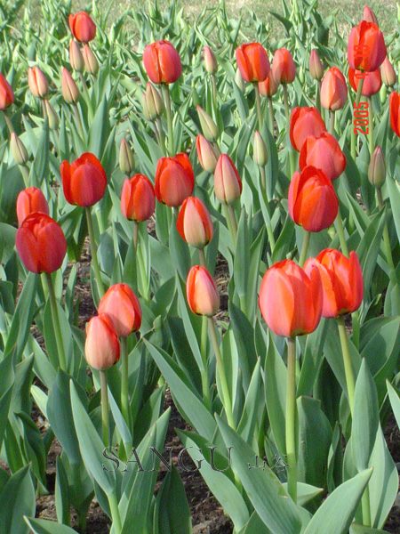 阿波罗郁金香是一个很老的品种,这么多年一直使用至今,说明人们对它的喜爱。用5度处理球用来生产切花的时候,花苞不大,如果温度稍高,会大大增加盲花率,所以慢慢的使用阿波罗做切花生产的越来越少。